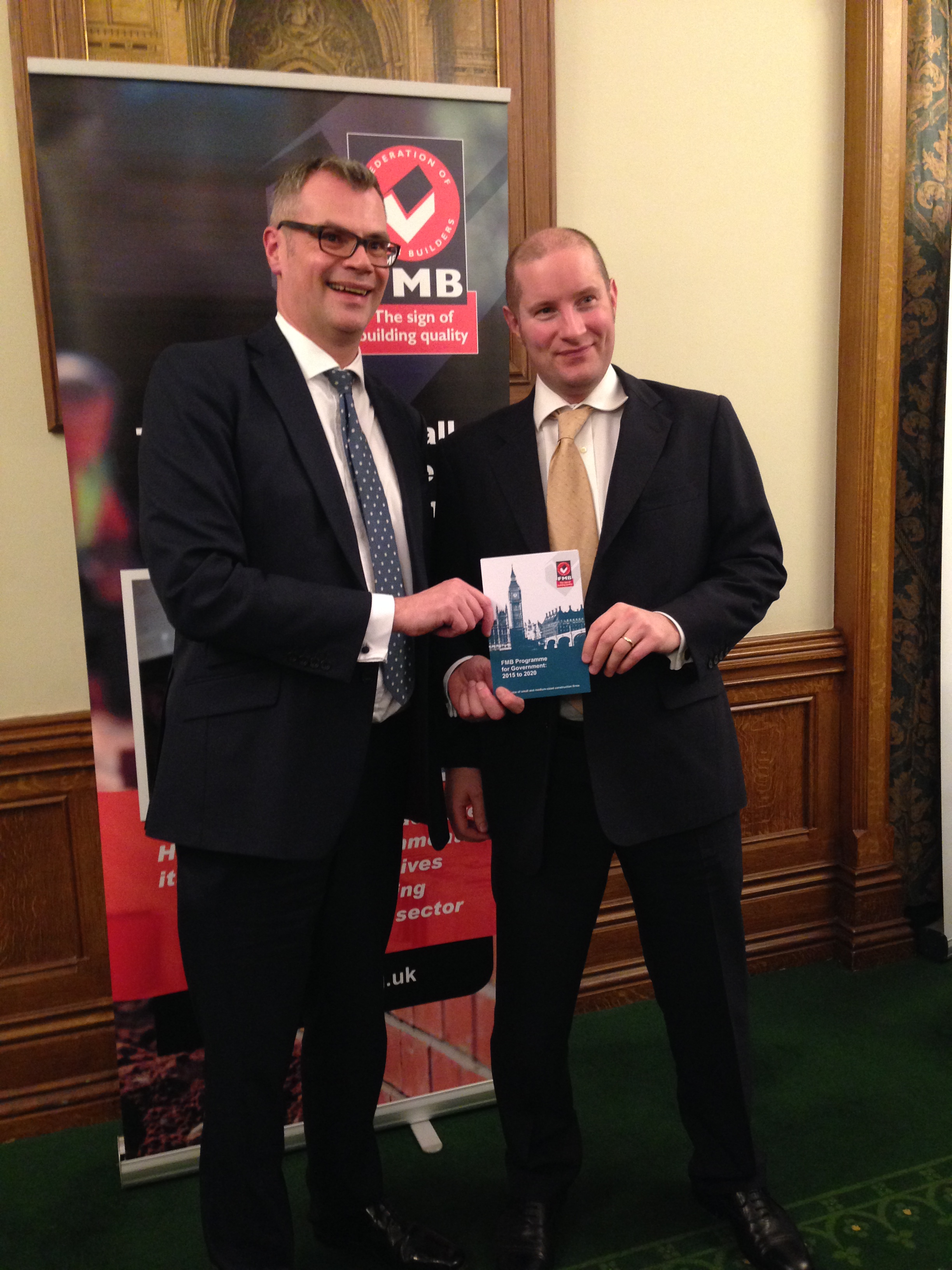 Sarah and I went along with my brother-in-law James (pictured with me above), who is a Chartered Surveyor and works for the City of London Corporation. James used to work on site with me when he was a teenager and this sparked his interest in building and property. He became a surveyor as a result of this. The current Minister for Housing, Brandon Lewis MP, spoke at the event. I was quite impressed with his speech but it’s a shame he didn’t stay for the panel discussion and questions as we all had a lot of questions to ask. The panel discussion included the Shadow Housing Minister, Emma Reynolds MP, and the Lib Dem Housing Spokesperson, Stephen Williams MP, and I was interested in what both of them had to say. I’m not party political, and neither are the Federation of Master Builders, but I’m very interested in politics. The statistic of the day for me was that the proportion of new homes built by small and medium-sized building firms (like mine) has fallen from two thirds in 1988 to just over one quarter in 2013.