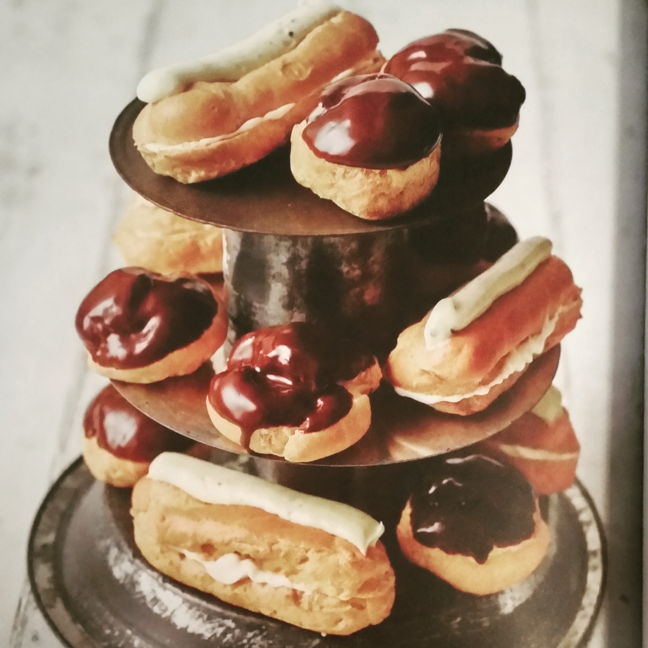 The Quarter Final of this year’s Bake Off has been and gone and I loved this week’s patisserie episode. I was really impressed by what the bakers produced, especially considering how exhausted they were likely to be by this point in the filming schedule. In my weekly review for the Radio Times I said as much and it seemed to resonate with the bakers who made it through. I’m looking forward to seeing who has the stamina to make it all the way and win series six. There was a lot of impressive choux pastry on show in this week’s episode. In my B.I.Y. book, I have recipes for Baileys profiteroles and white chocolate, orange and cardamom éclairs (pictured above). They’re delicious! I’m making the éclairs in the short little video below:
