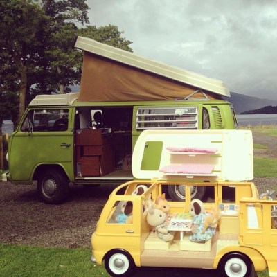 Just after we finished filming the Great British Bake Off and before the series went on air, we hired a camper van (one of the two pictured above) and travelled all over Scotland, from seeing the 2014 Commonwealth Games in Glasgow to dropping in on my good friend Norman in Buckie. It was a really special experience for us as a family and the kids still talk about it now. Our daughters were really taken with the camper vans at the show today and spent half the day climbing in and out of the Spaceships vans. I think this year’s holidays will end up including both tents and camper vans, and today has given us loads of ideas for the spring and summer when the weather starts to improve.