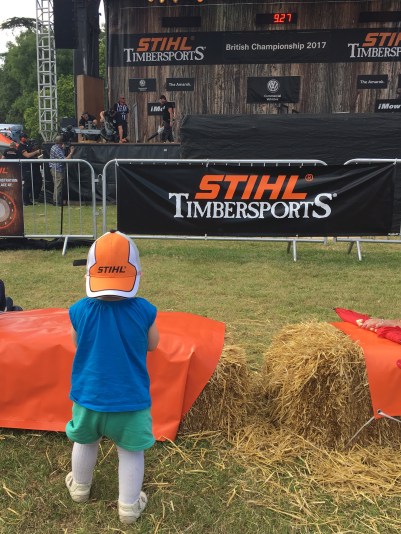 The best thing about camping with the STIHL team was that my family and I got to hang out backstage with them and the Timbersports athletes during Countryfile Live. After the show closed each night, we returned to the STIHL stand for dinner and drinks, and our kids and the other STIHL-family children all made firm friends and had the run of the showground to play each evening. They had the time of their lives jumping over hay bales and playing games, even our youngest STIHL fan (pictured above) loved it!