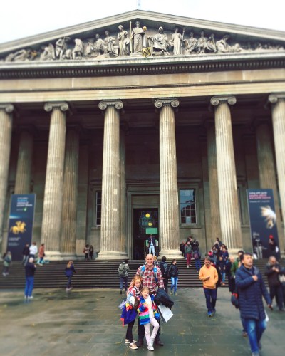 We were there to have a go at the Samsung Great Court Games, that happen once a month. To test out the game, we had a free run of the museum for about an hour before it opened – a really special experience for all of us. The next opportunity to play the game, where you’re Whatsapped clues to find around the museum, will be on Saturday 9 December from 11am to 4pm. Our eldest daughter (aged eight) really enjoyed playing as she’d been studying Egyptians and Romans at school, so there were so many amazing things for her to look at. There really is something for everything there though. I loved the Japan gallery, Sarah loved Medieval Europe and the kids loved Roman Britain and seeing the Egyptian mummies.