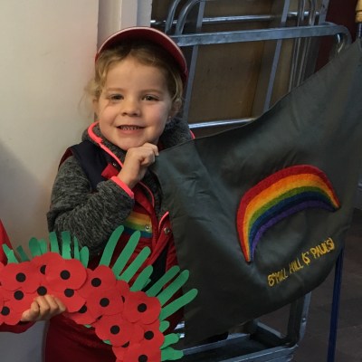 My wife Sarah and I aren’t religious but today, both of our elder daughters went to church for Remembrance Sunday services with their Brownies and Rainbows groups. It was our middle daughter (pictured above)’s first time going to a church service and she got to march in the parade with the flag while my niece laid the poppy wreath their Rainbows group had made on the war memorial. I think it’s important for the kids to participate in things like this as if we don’t remember the sacrifices made by others, we’ll always be in danger of letting history repeat itself. We showed them this little film by CBeebies to help put Remembrance Sunday into context for them.