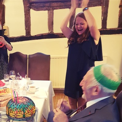 We had a fantastic birthday lunch yesterday in Joe’s honour at The Swan, a beautiful 15th century hotel in Lavenham, with his daughters and son-in-law, Sarah’s siblings, cousins and partners, and six of Joe’s great-grandchildren. Joe loved the cake and has already put in a request for a Leaning Tower of Pisa (Joe’s family is from Italy, near Pisa) cake for his 100th birthday so watch this space in five years’ time!