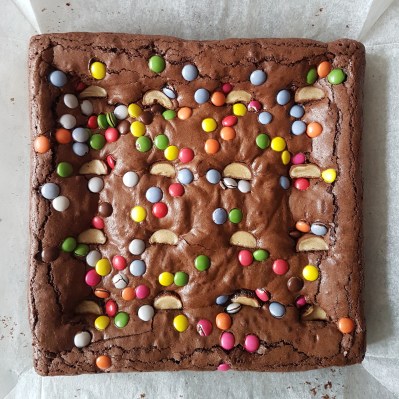 On Friday this week I went to visit Great Ormond Street Children’s Hospital. With the London Marathon only seven weeks away, we wanted to have the opportunity to see how some of the money we raise will be spent. We – Tom, Michael, Beca and I – had a wonderful afternoon in the Orthopaedic Ward meeting some incredibly brave young people and their families. Unfortunately you’re not allowed to bring food in for the kids but it always goes down well if you bake for the incredible staff there. I made my very easy chocolate brownie recipe – found at the bottom of this post – but substituted chocolate pieces and mini marshmallows for Mini Smarties and four fingers of Fudge cut into quarters. I really do need more sponsorship for my London Marathon race to raise as much money as possible to help children like those fantastic kids I met this week. Anything you can spare would be so appreciated. My fundraising page is here.