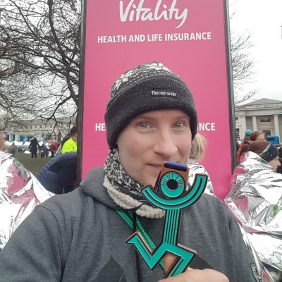 Sarah and I had a lovely night out for my birthday to see Black Panther last night – incredible film – and then an early night for me as I left the house at 06:45 to travel in for the Vitality Big Half Marathon in central London this morning. It was touch-and-go all week as to whether the race would go ahead and a big part of me was really hoping it would be called off because of the snow so I could have a birthday lie-in but along with some of my Baker’s Dozen buddies – Tom, Michael, Selasi, Jane & Mat – we braved the cold weather this morning and gave it a go. I was chuffed to bits to run it in 2 hours, 1 minute and 44 seconds, even once I heard that Sir Mo Farah won the race in an incredible 1:01:40 – a whole hour faster, which blows my mind a bit! It’s also by far the coolest race medal I’ve ever received. So the moral of the story is that peanut butter cake is the perfect carb loading fuel ahead of a big race – bear that in mind if you have one coming up. Until next time, Happy Baking!