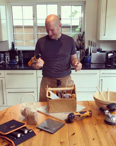 I did some really fun filming across the road in my parents’ kitchen this week for Triton Tools – using their woodworking tools to make a cake inside a gingerbread tool box, complete with gingerbread tools. The full video will follow soon and there are more pictures on my Instagram here. It was pretty good timing as the team at Triton have kindly left me a load of tools that I’m using to build my kitchen at the moment. Projects like this never fail to make me smile about the journey from having been on Bake Off to what I get to do now.