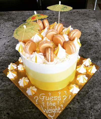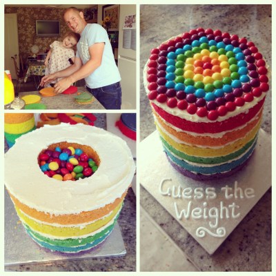 I’m a parent governor at our middle daughter’s infant school and over the years since Bake Off I’ve tried to do as many baking-related things as possible with them. One of the highlights for the kids is the annual summer fair, and for the past three years I’ve done the ‘Guess The Weight of the Cake’. Last year’s Rainbow Funfetti Lemon Cake is pictured above (recipe here).