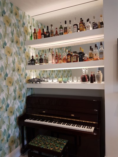 My home renovations and the Master’s degree course have meant there’s been a real shortage of baking in my kitchen in 2018. However, I now have a fantastic new kitchen with loads of worktop space (above), so I’m really hoping to get innovating again in 2019. I’m also going to get my act together to run baking workshops from home, so if you’re near North London (or visiting) and you’d be interested in small, private classes, don’t hesitate to get in touch. I’m really chuffed with the new kitchen – it’s always been the heart of the house but there’s just so much space now. I’ve also built an awesome bar, which we’ll be hitting up for a Christmas Eve cocktail night with our neighbours. I’m learning the piano (slowly, badly) this year too, to try and keep up with my daughters. The kitchen has all my framed Tom Hovey Bake Off prints on the wall too (see pics below). And we also have an incredible new English oak dining table, made by my fantastic friend Pip.